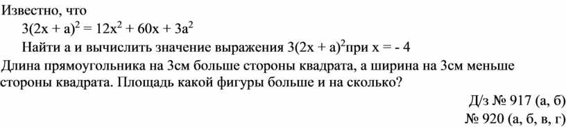 Найти а и вычислить значение выражения 3(2x + a)2при х = - 4