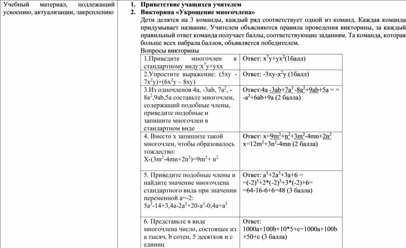 Учебный материал, подлежащий усвоению, актуализации, закреплению