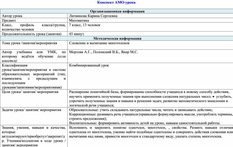 Классификация урока/занятия/мероприятия в системе образовательных мероприятий (тип, взаимосвязь с предыдущим и последующим уроками/занятиями/мероприятиями) |