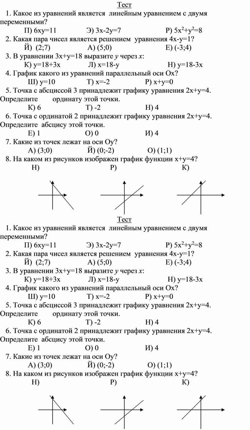 1. Какое из уравнений является линейным уравнением с двумя переменными?