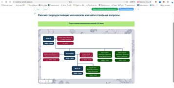 1. Фронтальный опрос по схеме Учащимся предложено рассмотреть родословную Рюриковичей и сформулировать ответы на вопросы: