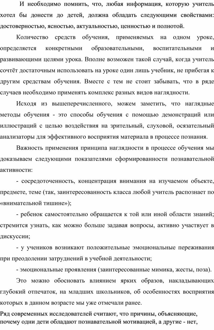 Наглядные методы являются эффективным средством формирования познавательной мотивации младших школьников при реализации следующих условий: