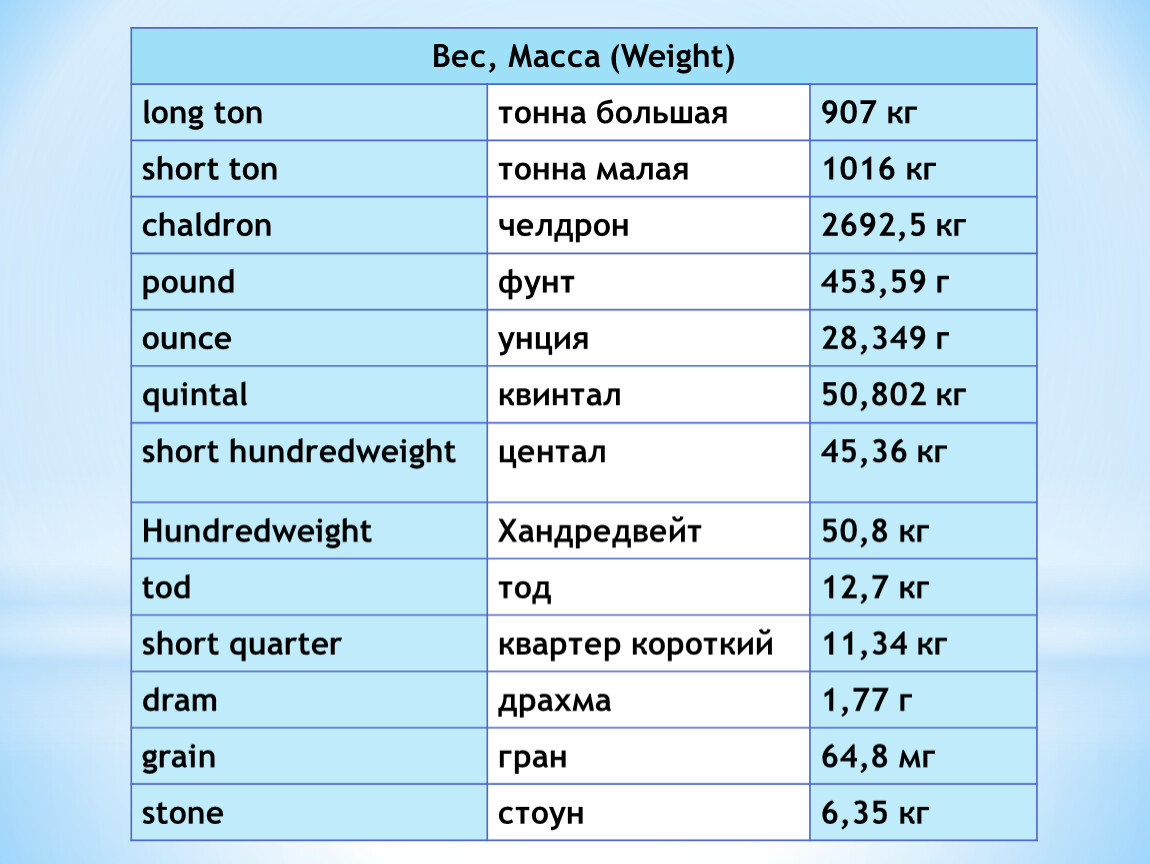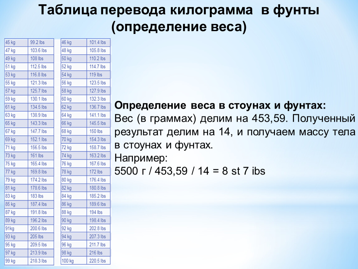 Таблица перевода килограмма в фунты