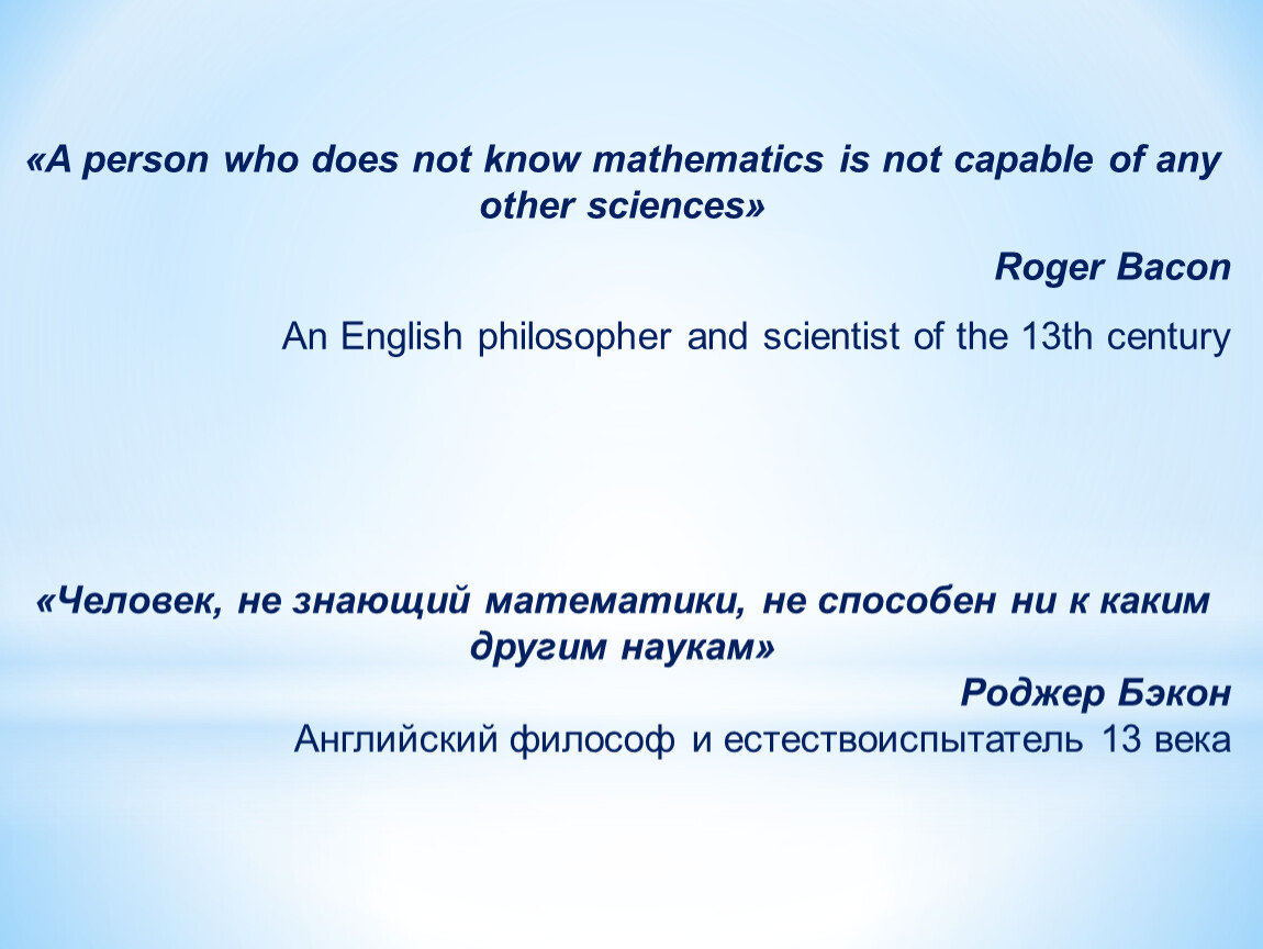 «A person who does not know mathematics is not capable of any other sciences»