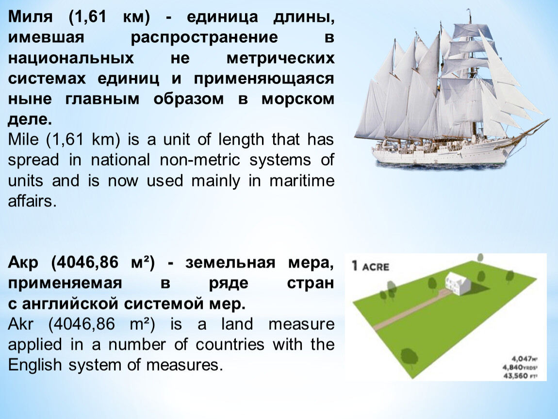 mile | миля | 1609 м |