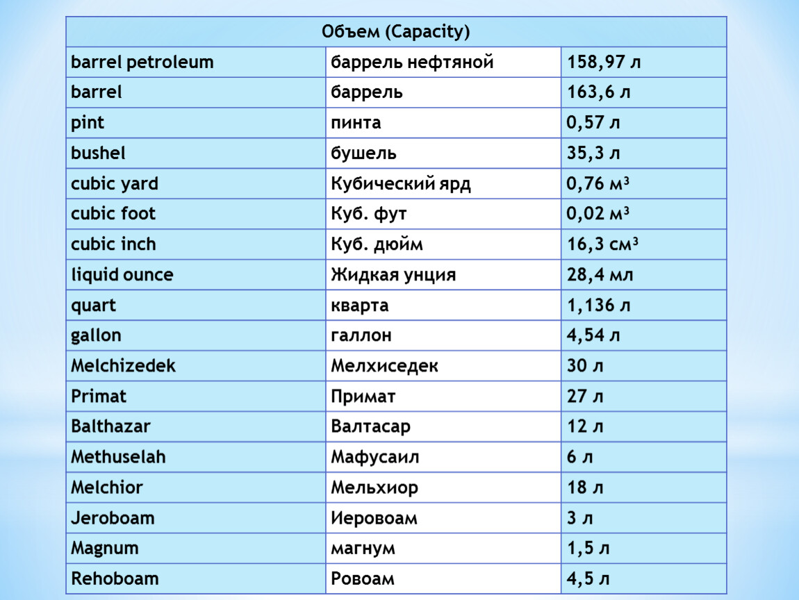 gallon | галлон | 4,54 л |