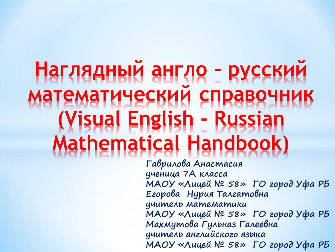 Разработать наглядный англо – русский математический справочник;