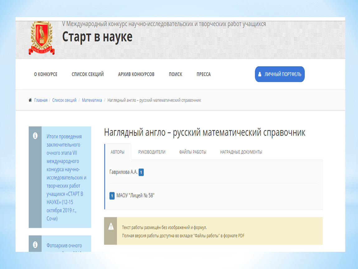 Конечный результат оформлен в виде справочника, который может быть использован школьниками, студентами, учителями, преподавателями. Справочник носит наглядный, доступный, научный характер.
