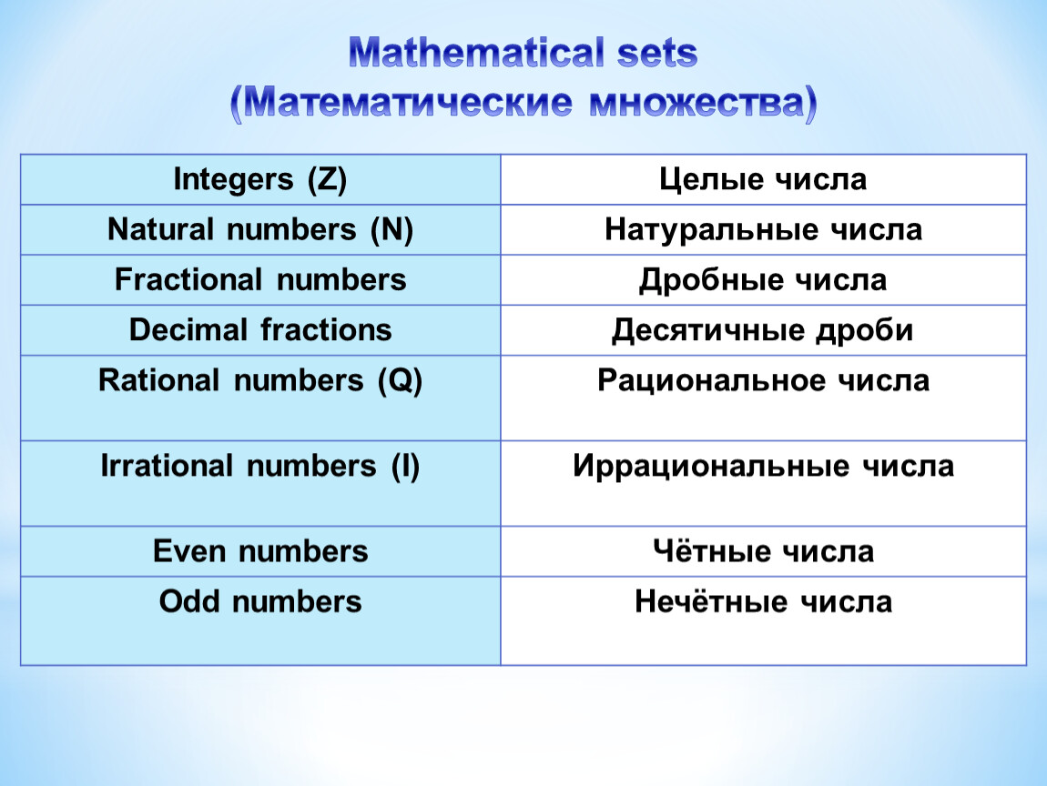 Natural numbers (N) | Натуральные числа |