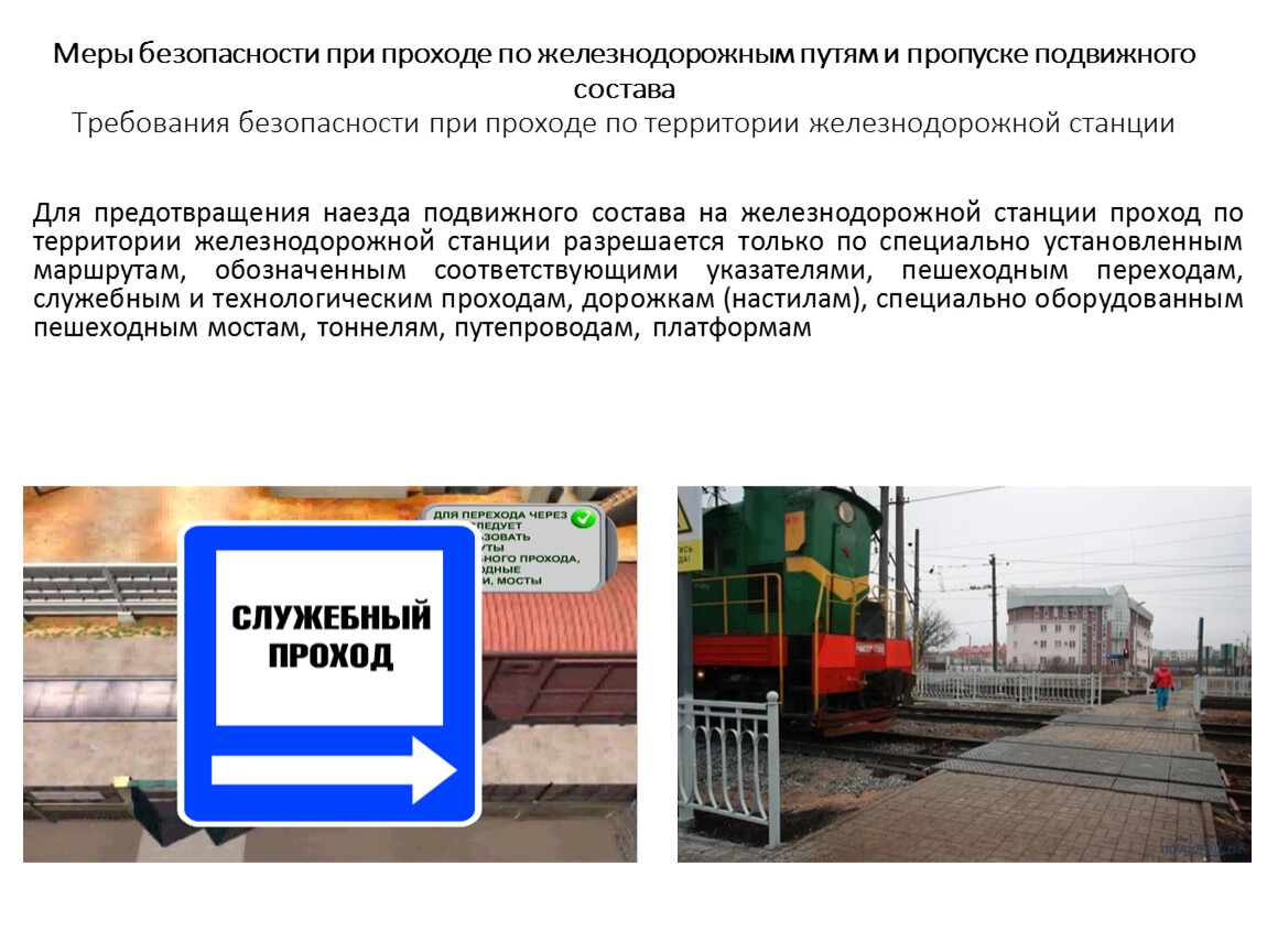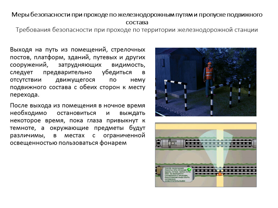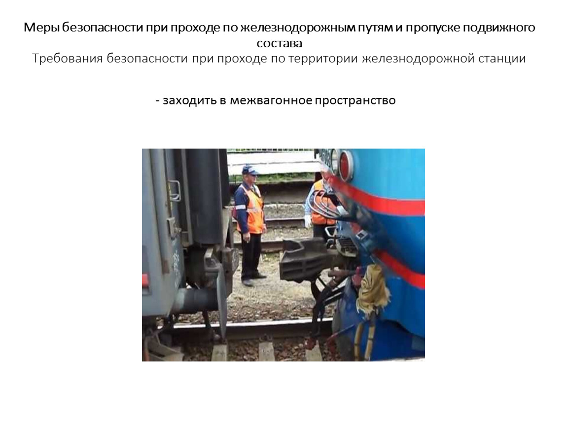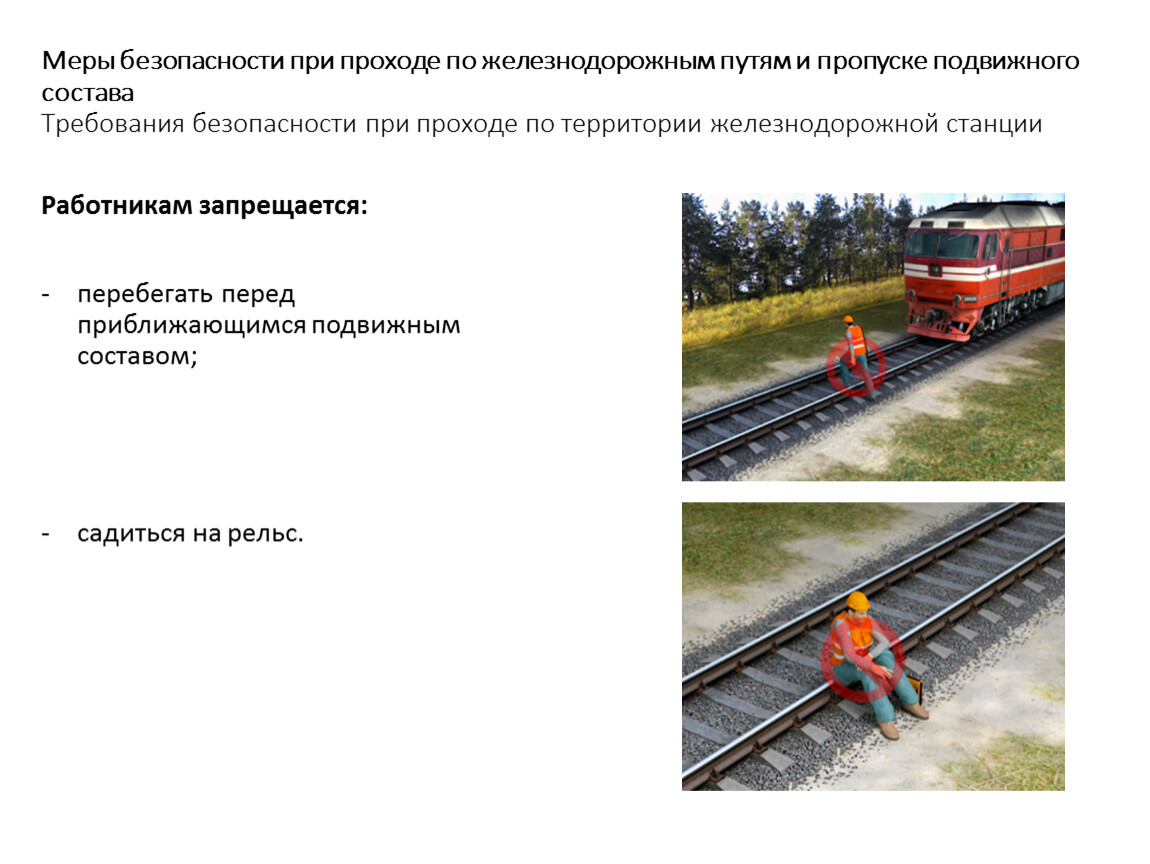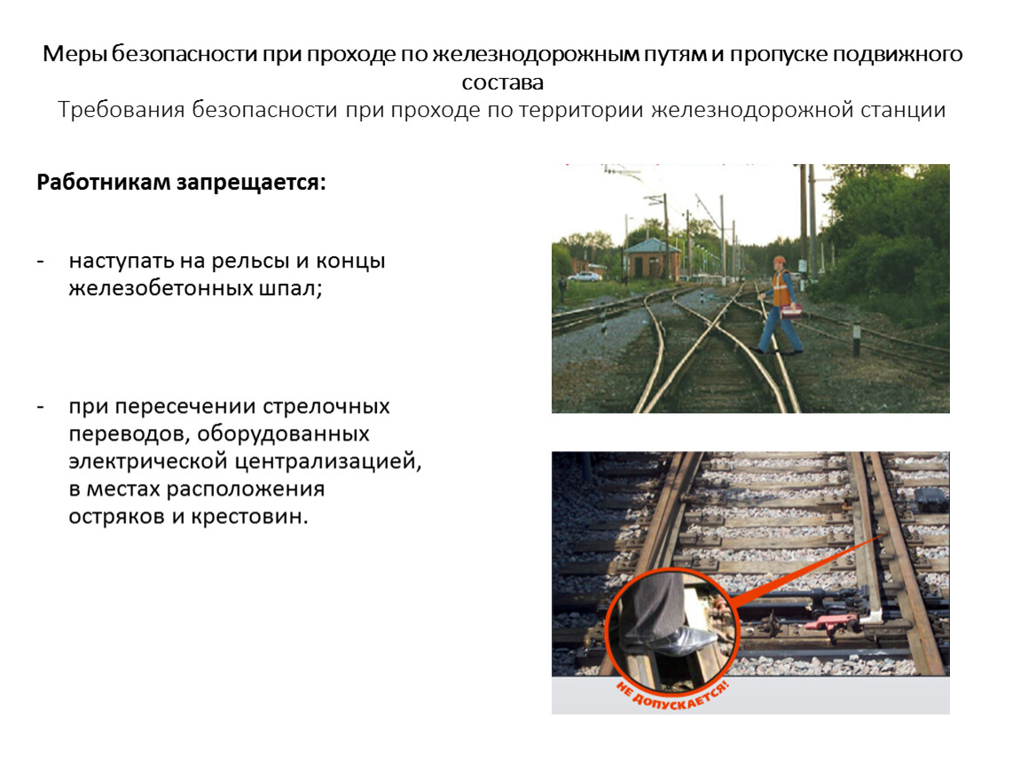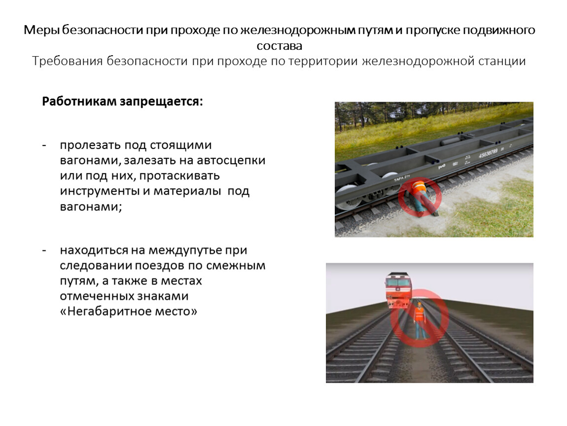 Меры безопасности при проходе по железнодорожным путям и пропуске подвижного состава Требования безопасности при проходе по территории железнодорожной станции