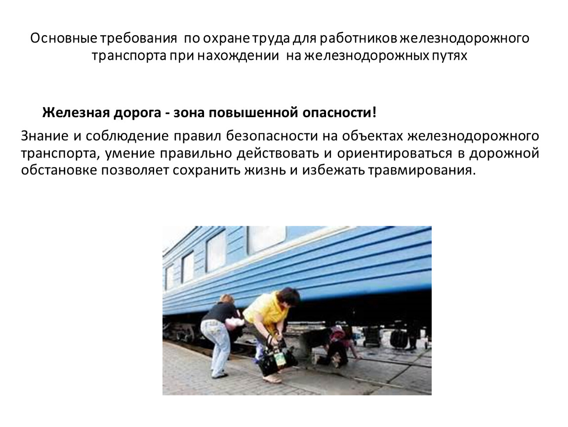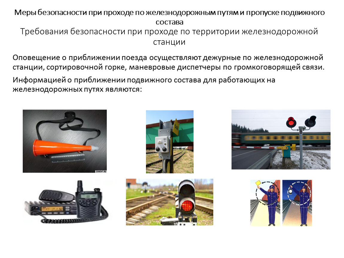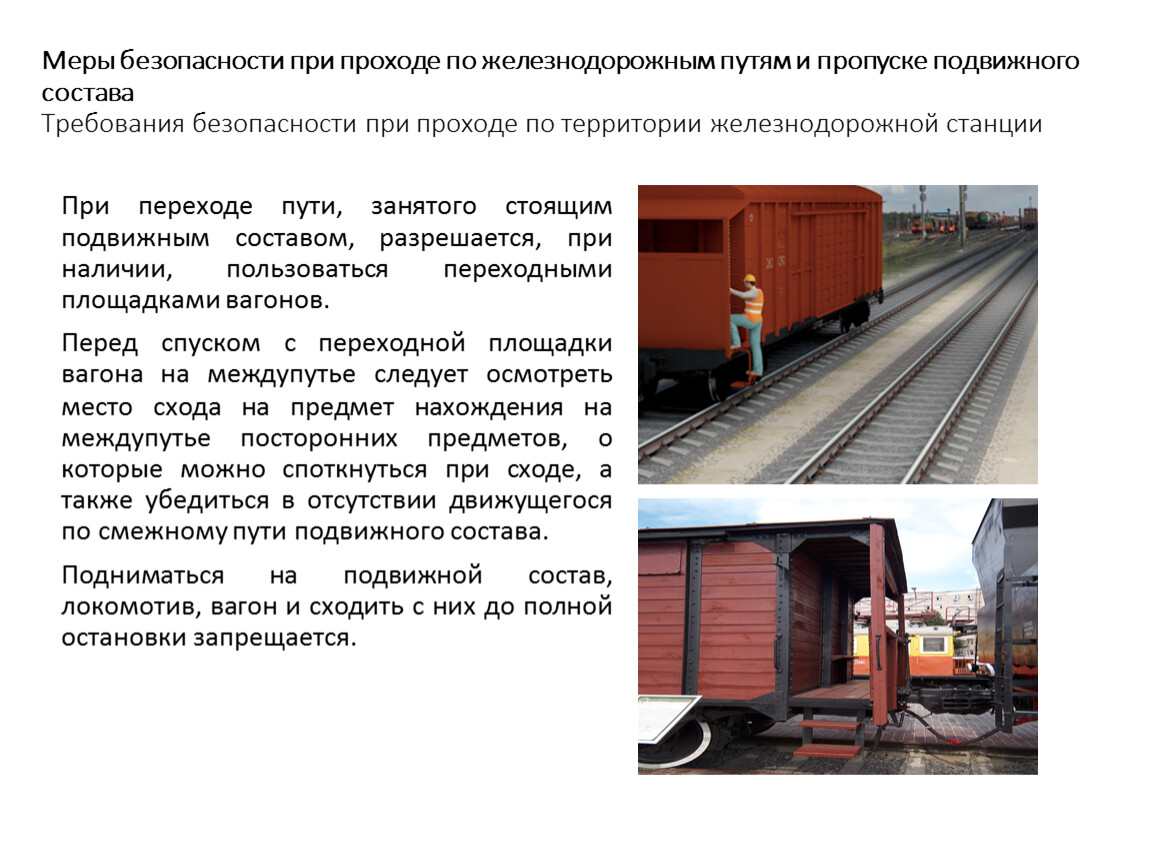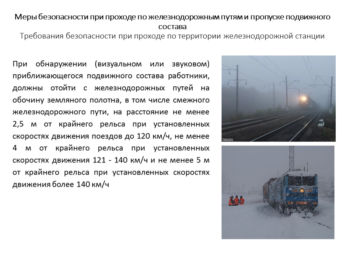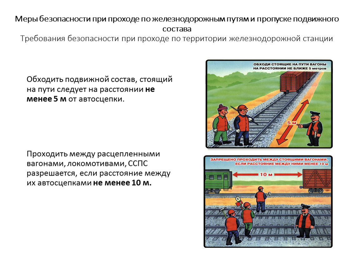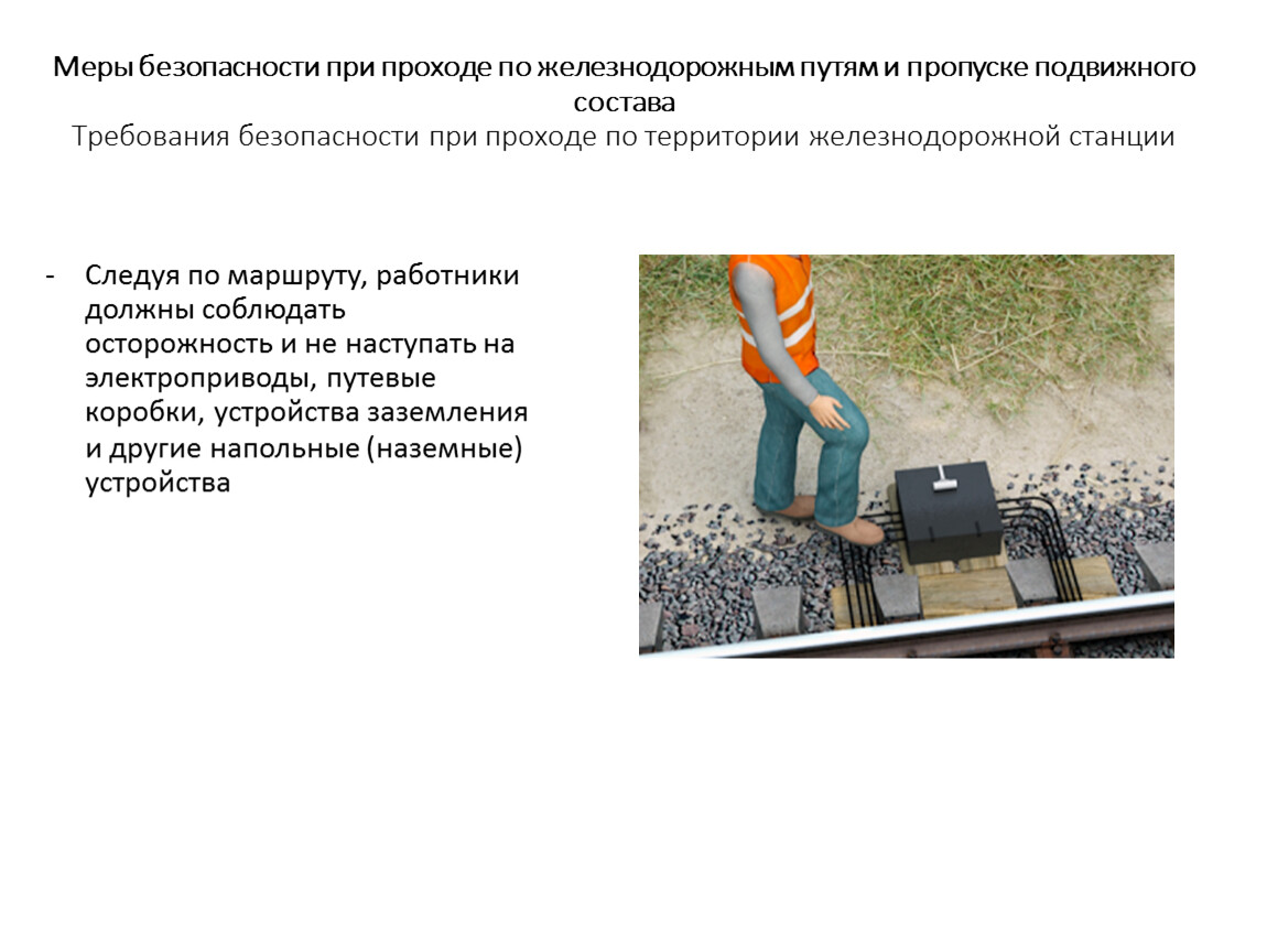 Меры безопасности при проходе по железнодорожным путям и пропуске подвижного состава Требования безопасности при проходе по территории железнодорожной станции