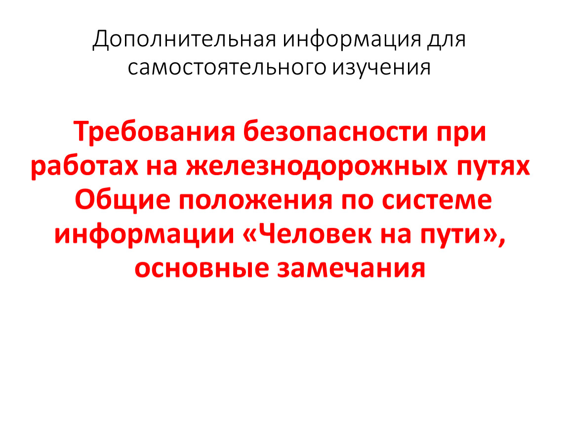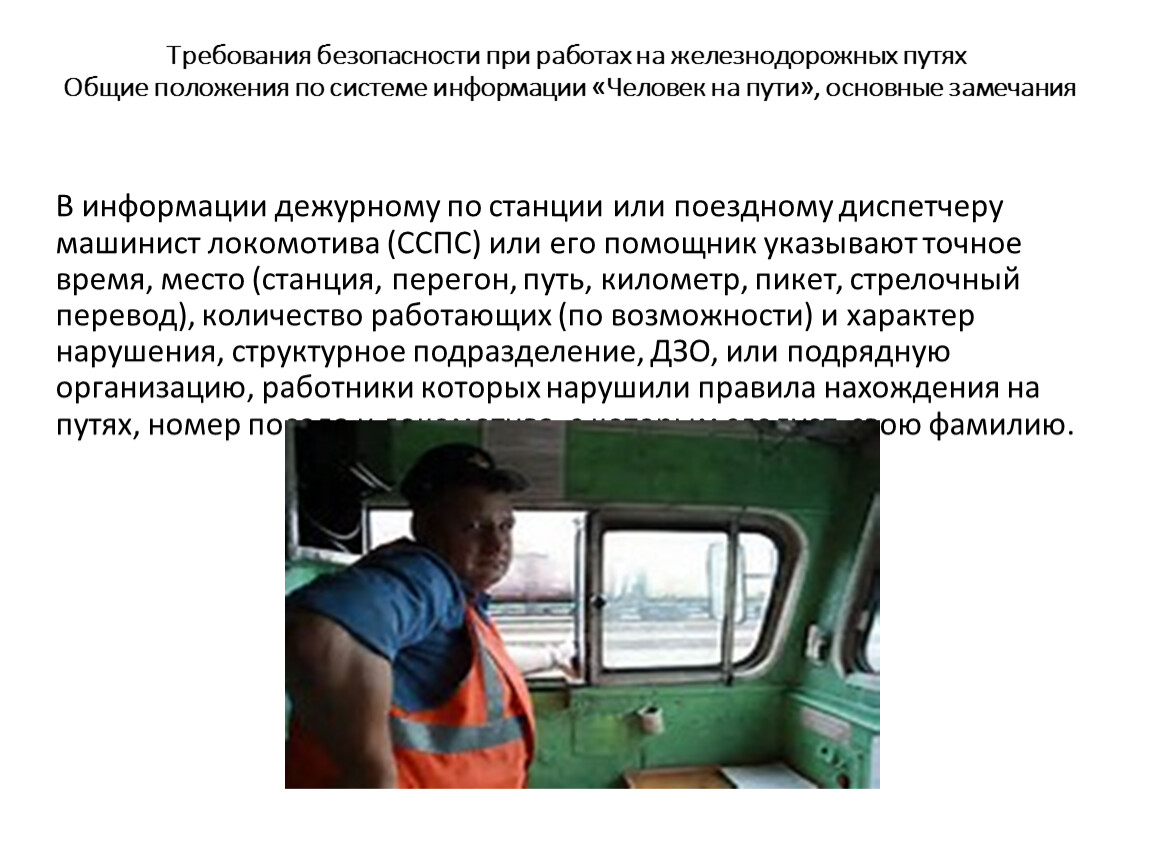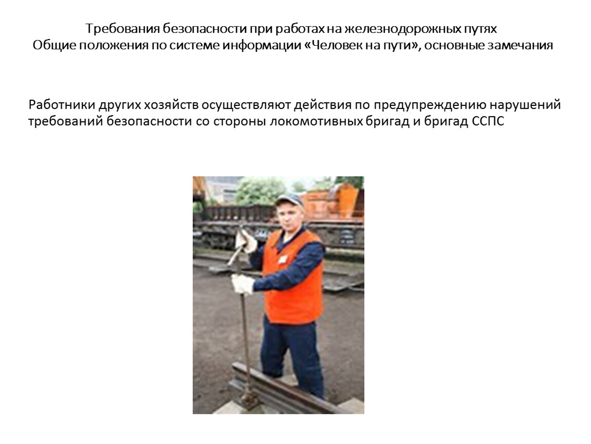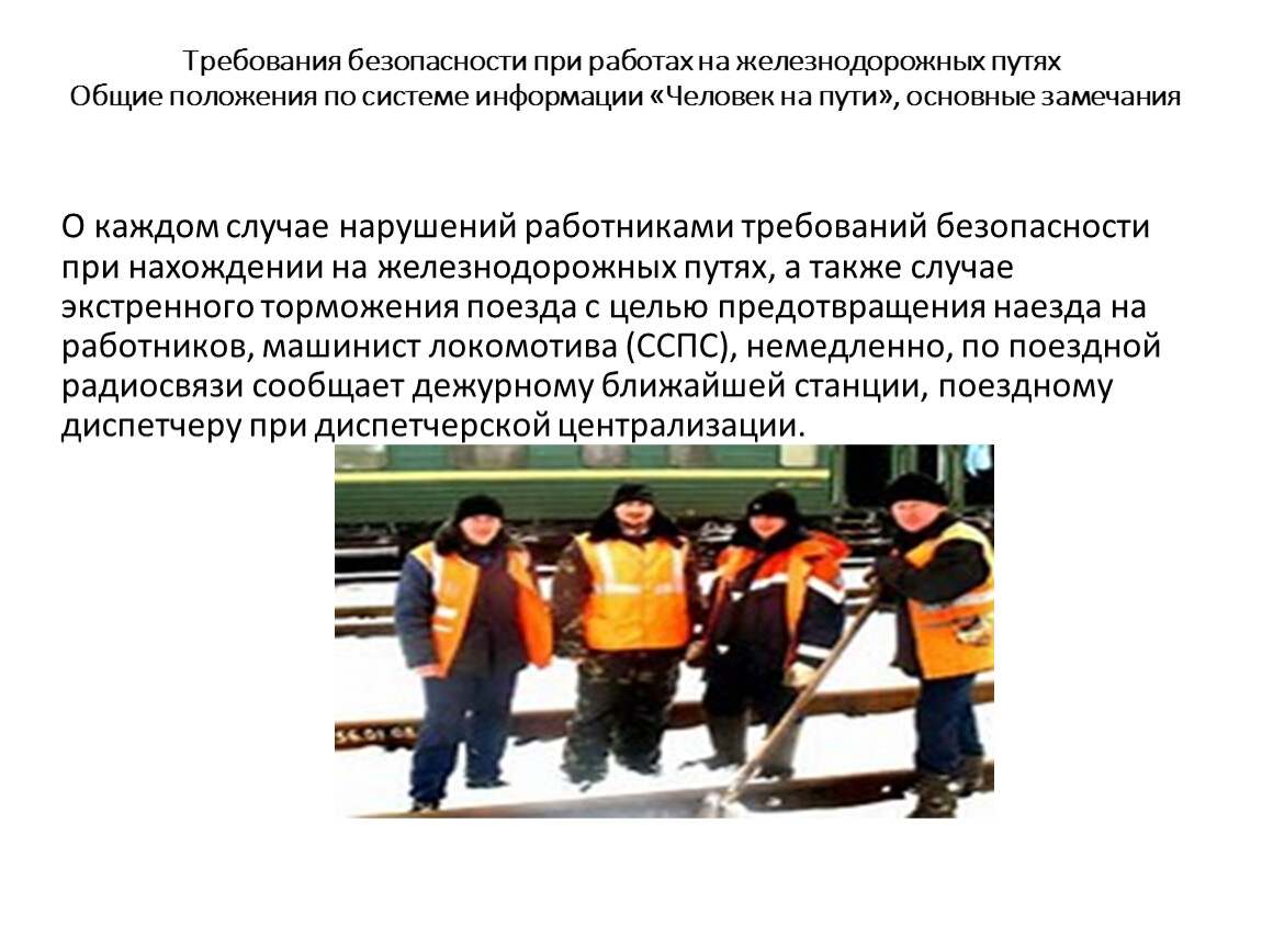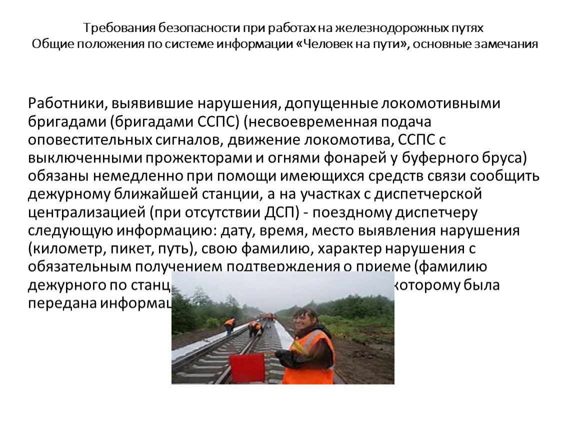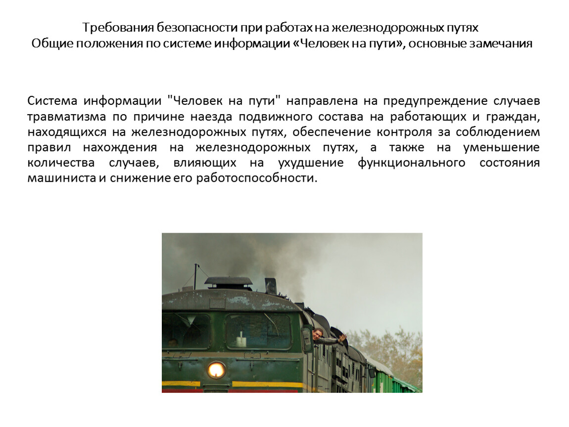 Требования безопасности при работах на железнодорожных путях Общие положения по системе информации «Человек на пути», основные замечания