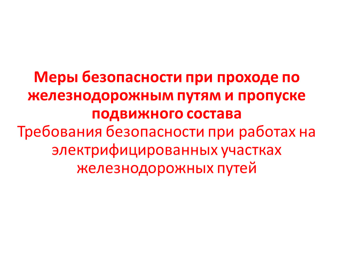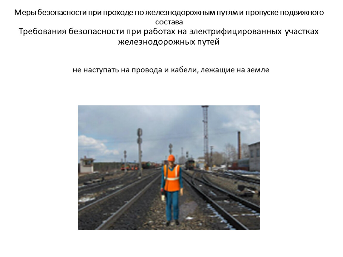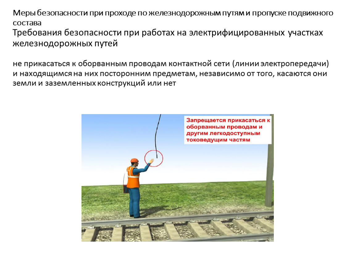 Меры безопасности при проходе по железнодорожным путям и пропуске подвижного составаТребования безопасности при работах на электрифицированных участках железнодорожных путей