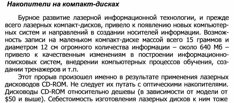 Этот прорыв произошел именно в результате применения лазерных дисководов CD-ROM. He следует их путать с оптическими накопителями. Дисководы CD-ROM относительно дешевы (в зависимости от модели от