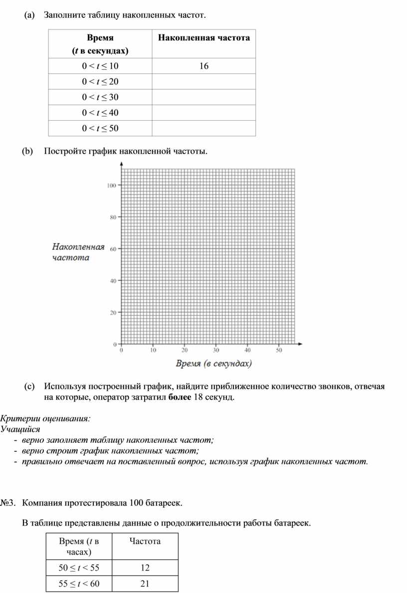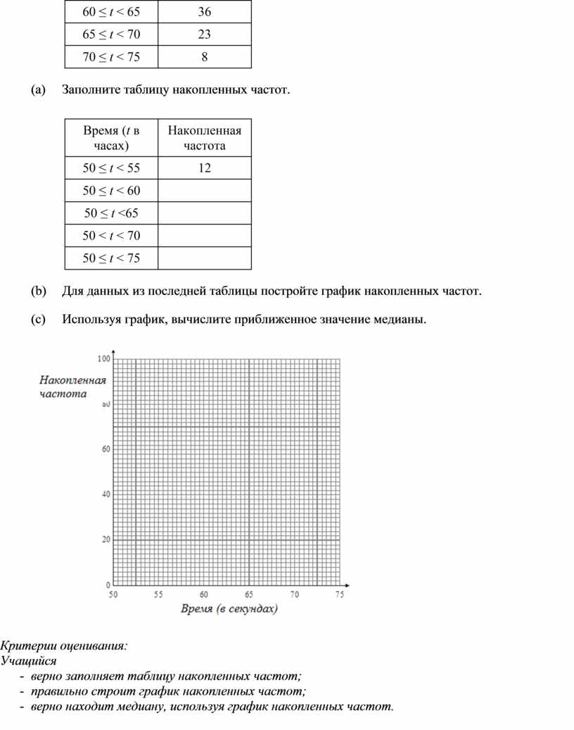 - правильно отвечает на поставленный вопрос, используя график накопленных частот.