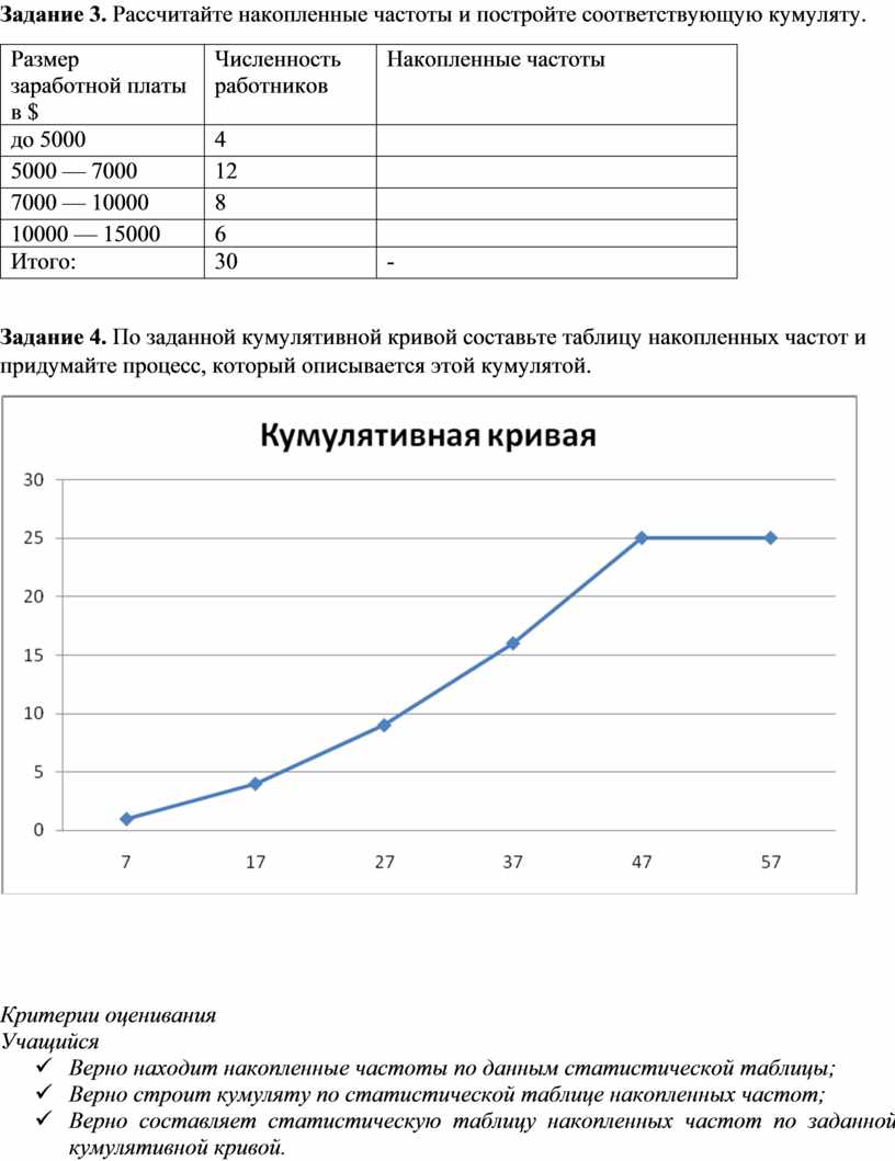 Задание 4. По заданной кумулятивной кривой составьте таблицу накопленных частот и придумайте процесс, который описывается этой кумулятой.