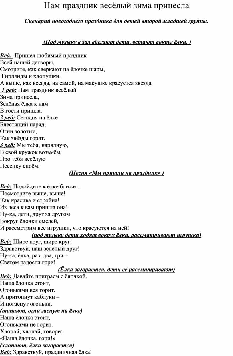 Сценарий новогоднего праздника для детей второй младшей группы.