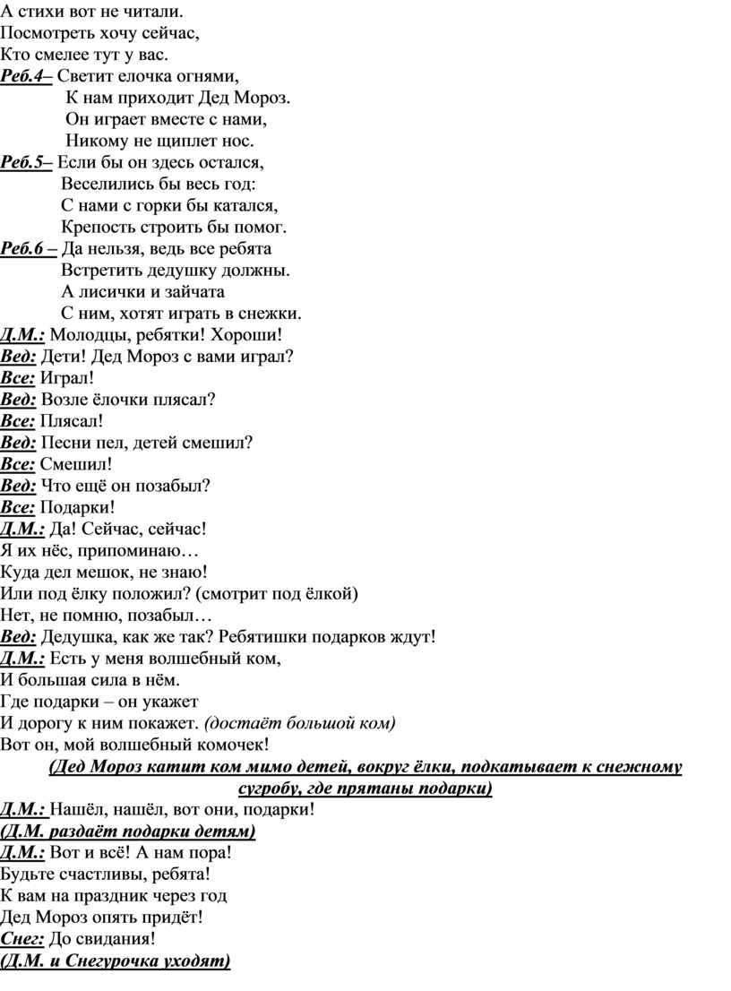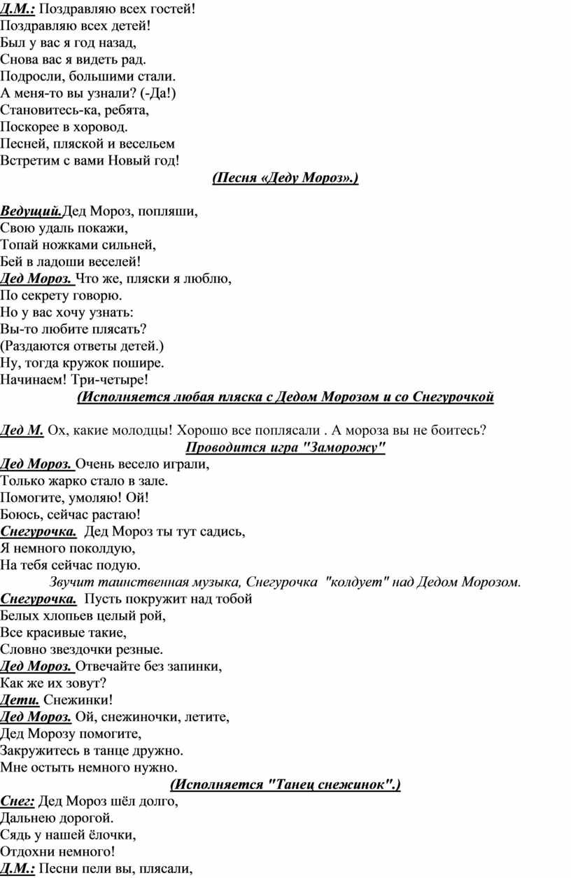 Дед М. Ох, какие молодцы! Хорошо все поплясали . А мороза вы не боитесь?