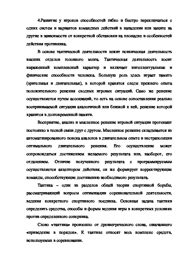 велико значение индивидуальных тактических действий в спортивной