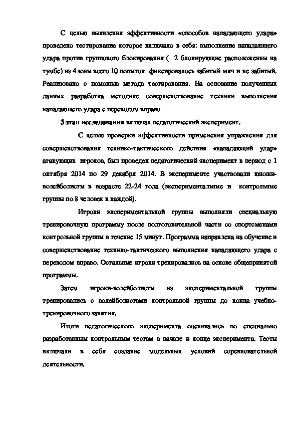 «Нападающий удар, как основной фактор влияющий на эффективность