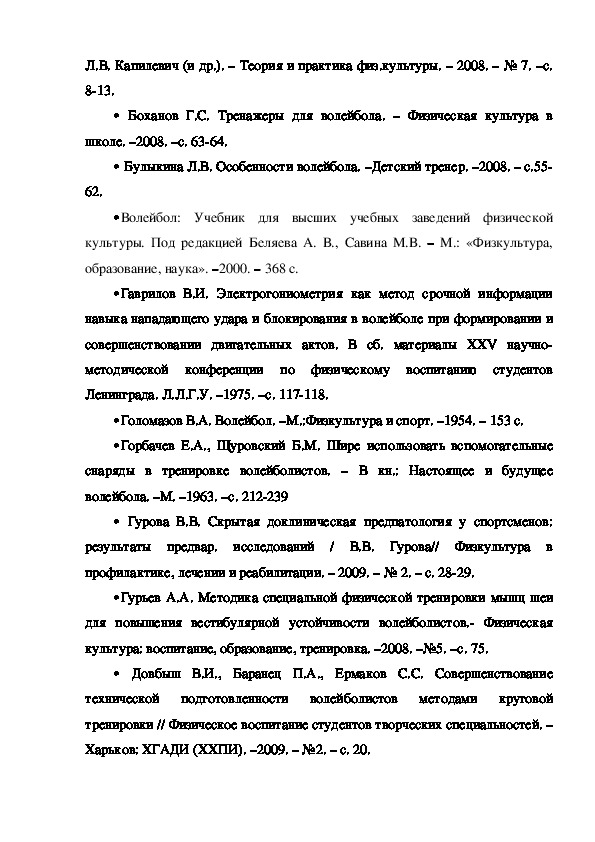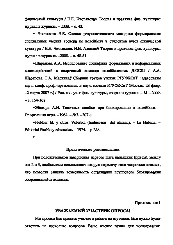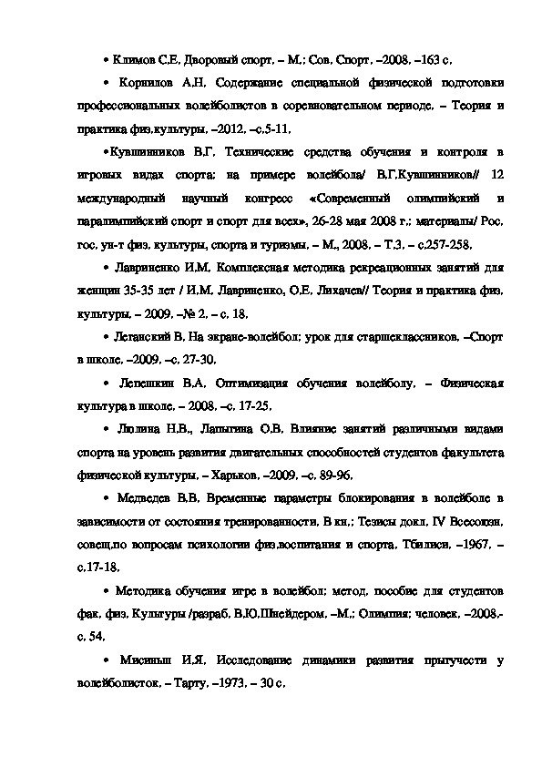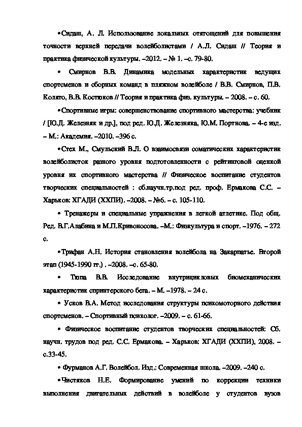 В учебнометодической литературе по волейболу накоплен
