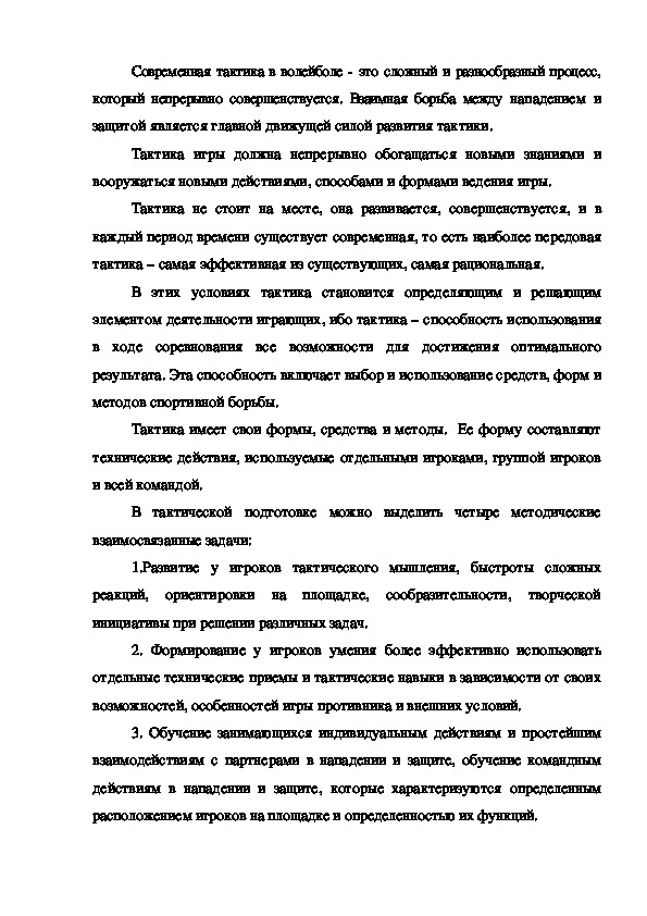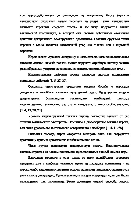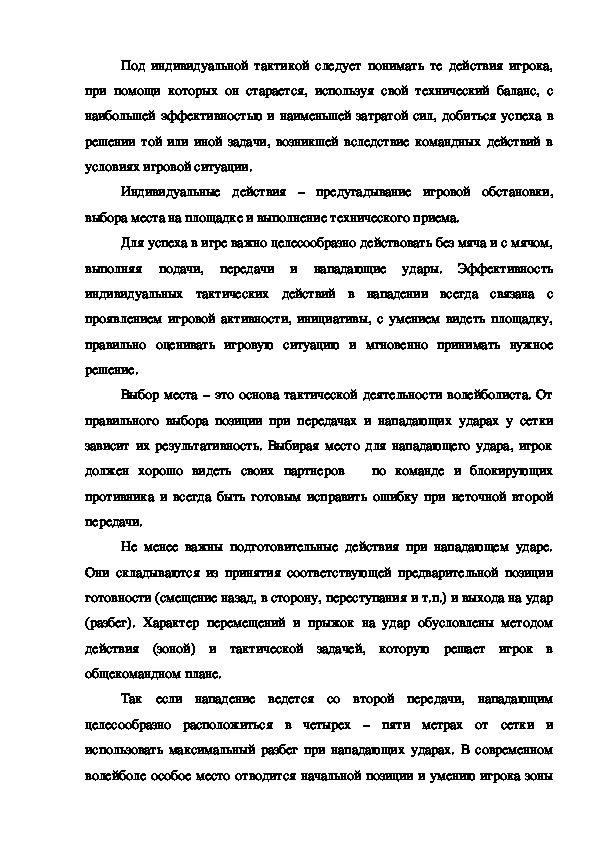 тренировке волейболистов, так как при помощи индивидуальных тактических