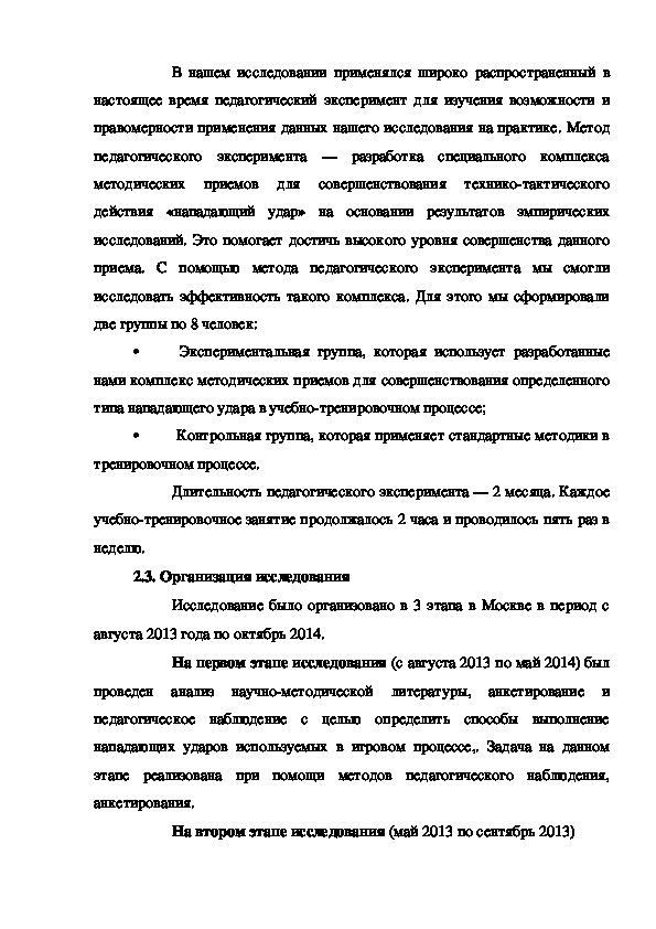 2.3. Организация исследования…………………….…………………...