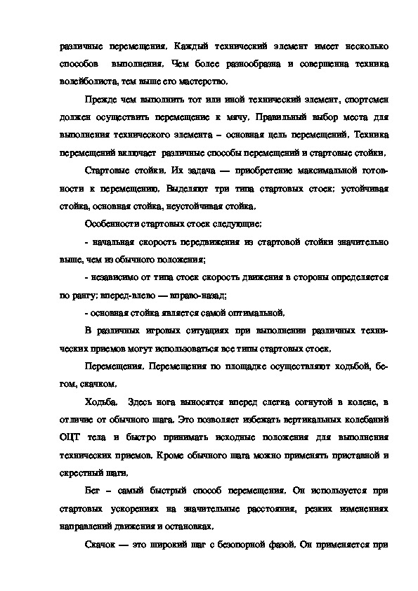 перемещений включает различные способы перемещений и стартовые стойки.
