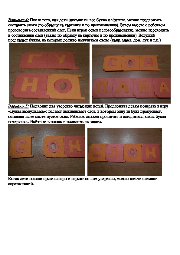 Вариант 5: Подходит для уверенно читающих детей. Предложить детям поиграть в игру
