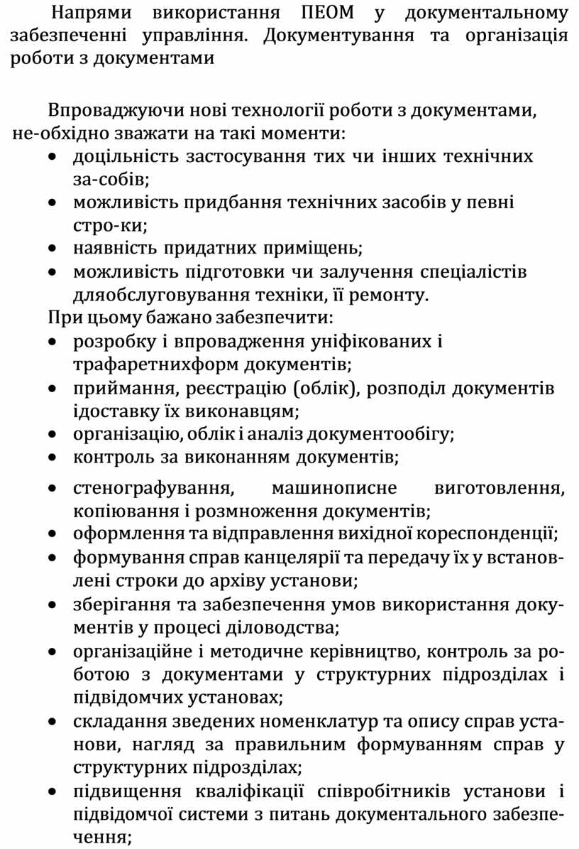Напрями використання ПЕОМ у документальному забезпеченні управління. Документування та організація роботи з документами