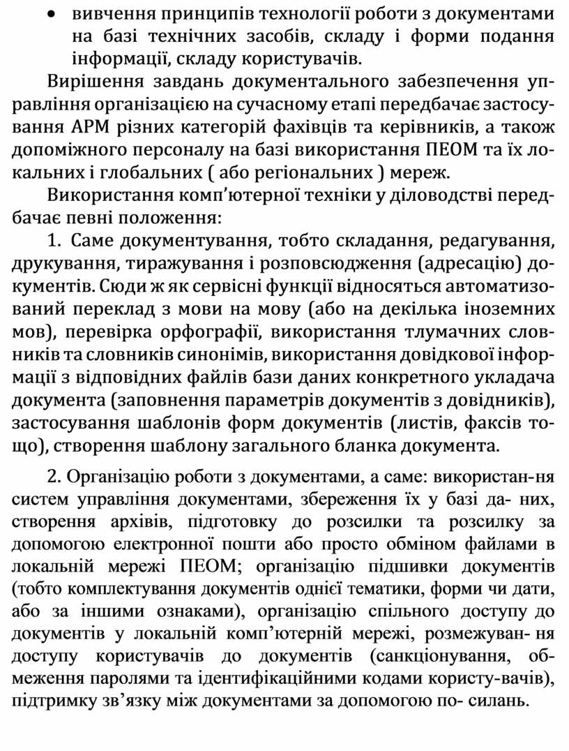 Вирiшення завдань документального забезпечення уп- равлiння органiзацiєю на сучасному етапi передбачає застосу- вання АРМ рiзних категорiй фахiвцiв та керiвникiв, а також допомiжного персоналу на базi використання ПЕОМ та їх ло- кальних i глобальних ( або регiональних ) мереж.