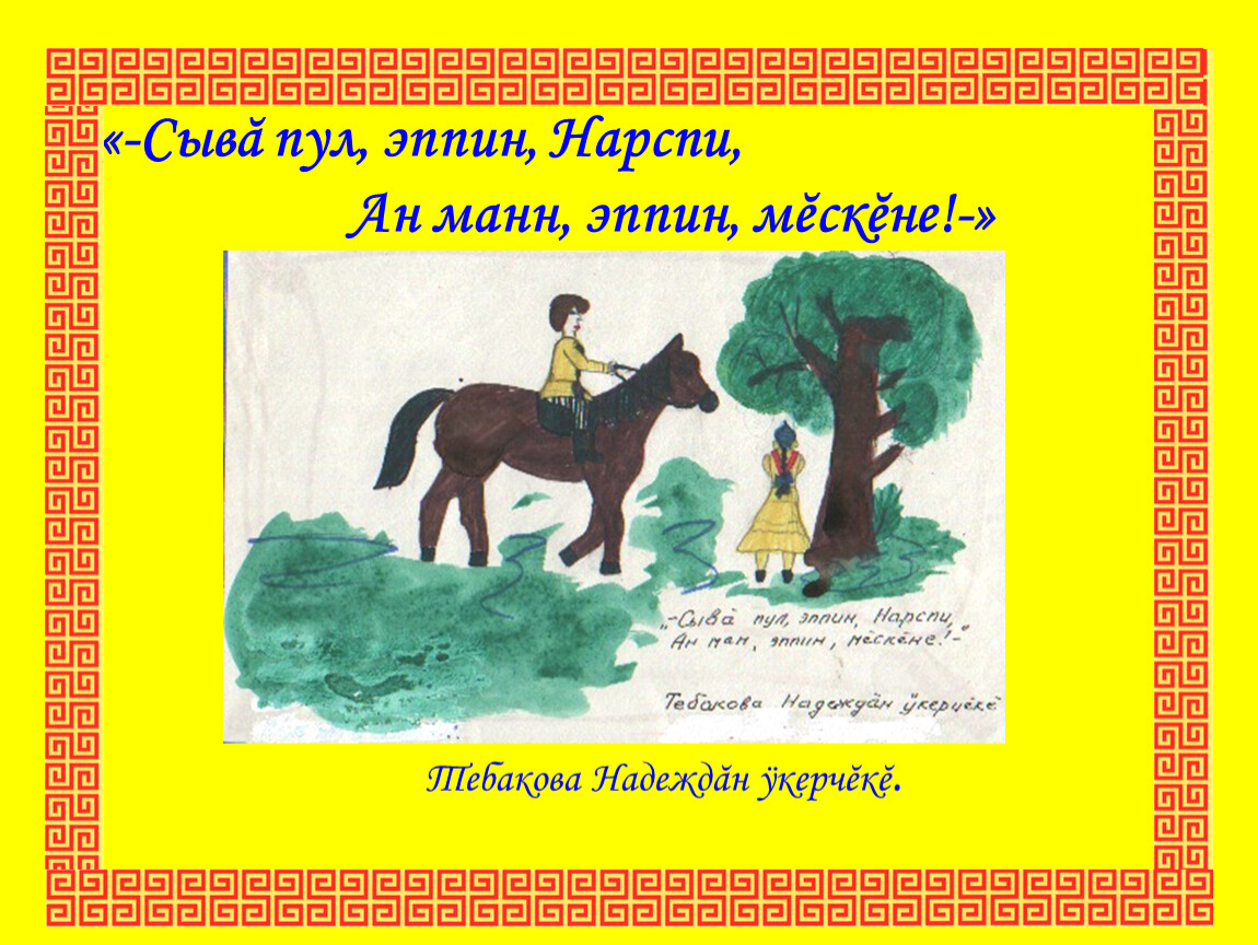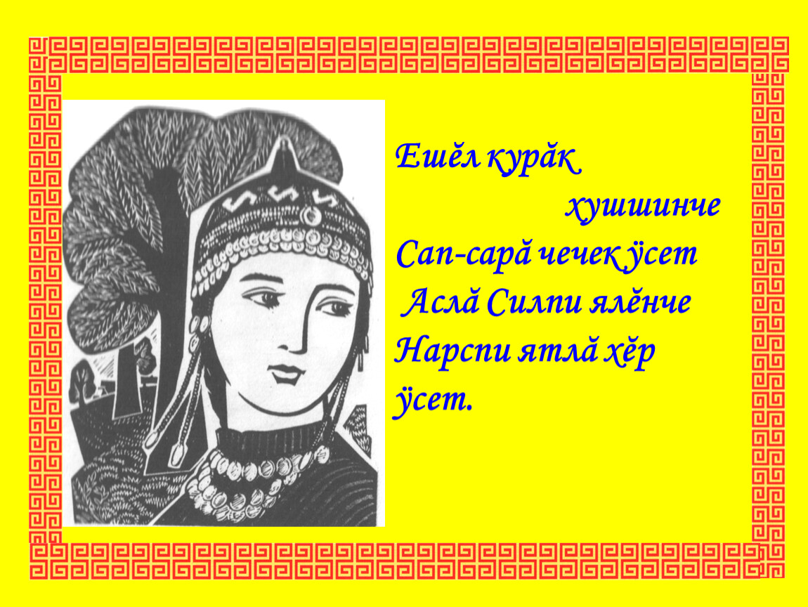 Сетнер утрĕ пĕр-пĕчченКĕрсе кайрĕ вăрманаНарспи асапне илтсеВилĕм сунать тăшмана