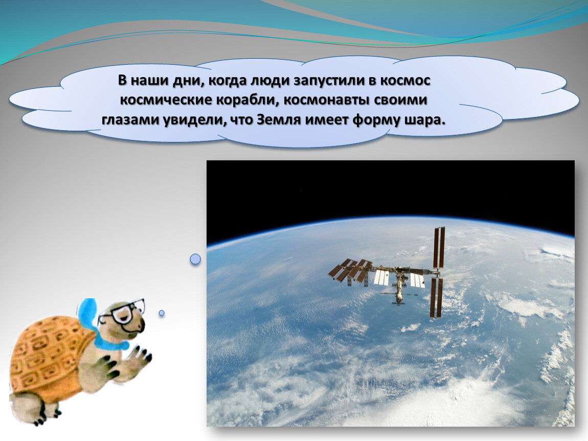 В наши дни, когда люди запустили в космос космические корабли, космонавты своими глазами увидели, что Земля имеет форму шара.