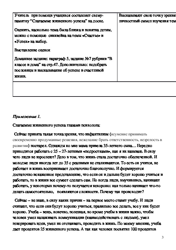 учащиеся составляют схемупамятку “Слагаемые жизненного