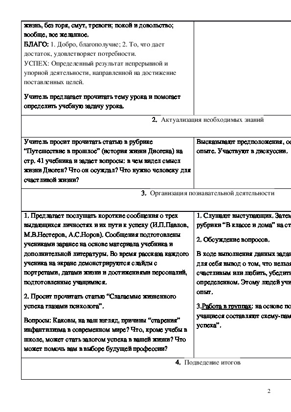 Создать условия для формирования представлений учащихся о составляющих жизненного успеха личности,