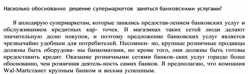 Насколько обоснованно решение супермаркетов заняться банковскими услугами?
