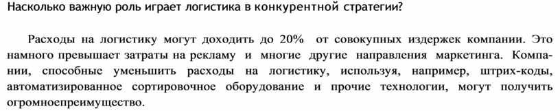 Насколько важную роль играет логистика в конкурентной стратегии?