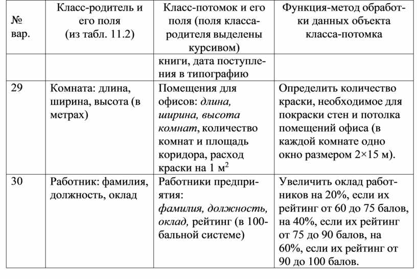 Класс-родитель и его поля (из табл. 11.2) |