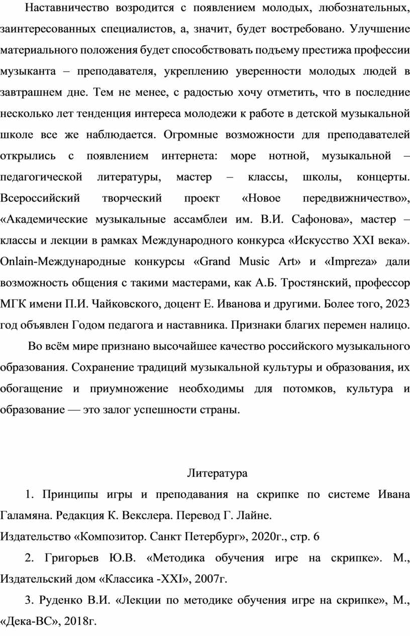 3. Руденко В.И. «Лекции по методике обучения игре на скрипке», М., «Дека-ВС», 2018г.