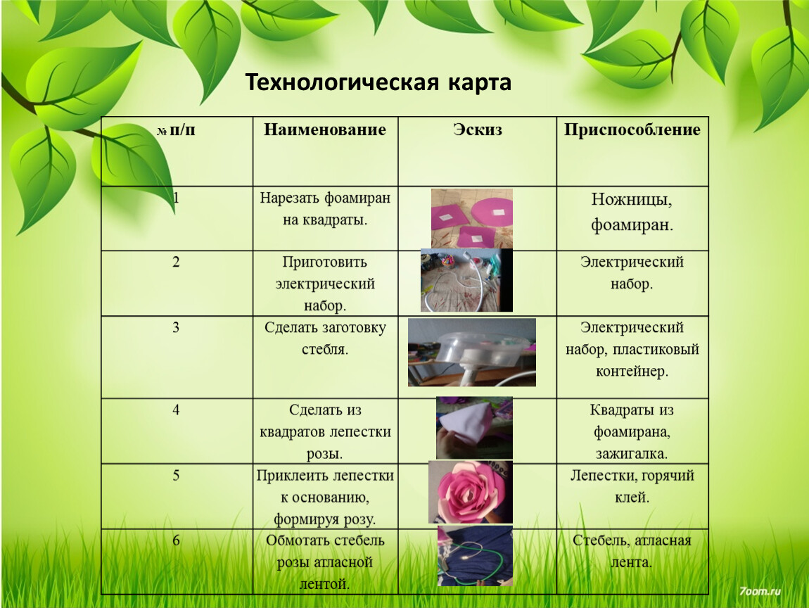 4 | Сделать из квадратов лепестки розы. | Квадраты из фоамирана, зажигалка. | |