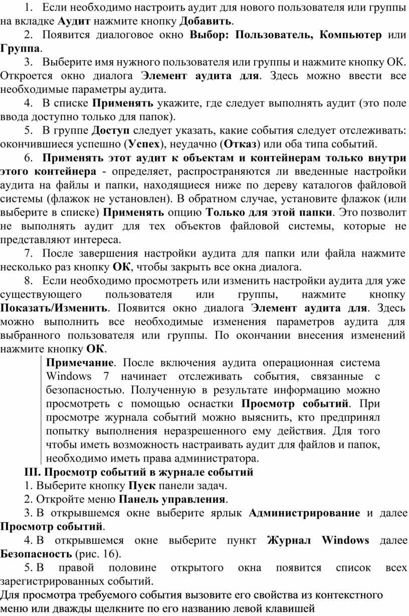 Тема: Настройка параметров регистрации и аудита в Windows 7