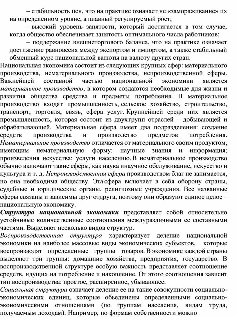 Национальная экономика – исторически сложившаяся совокупность сфер экономической деятельности на территории данной страны, функционирующая с целью удовлетворения потребностей людей. Каждая национальная экономика стремится к достиженню основных целей: