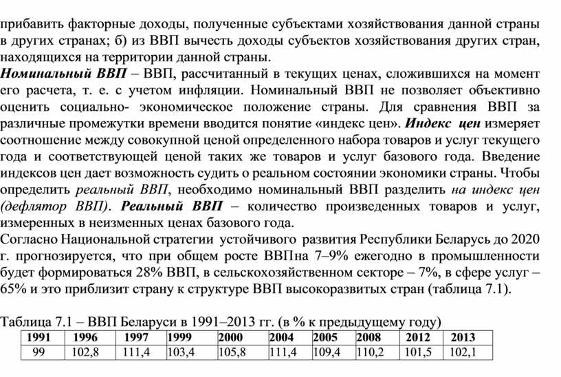 Таблица 7.1 – ВВП Беларуси в 1991–2013 гг. (в % к предыдущему году)