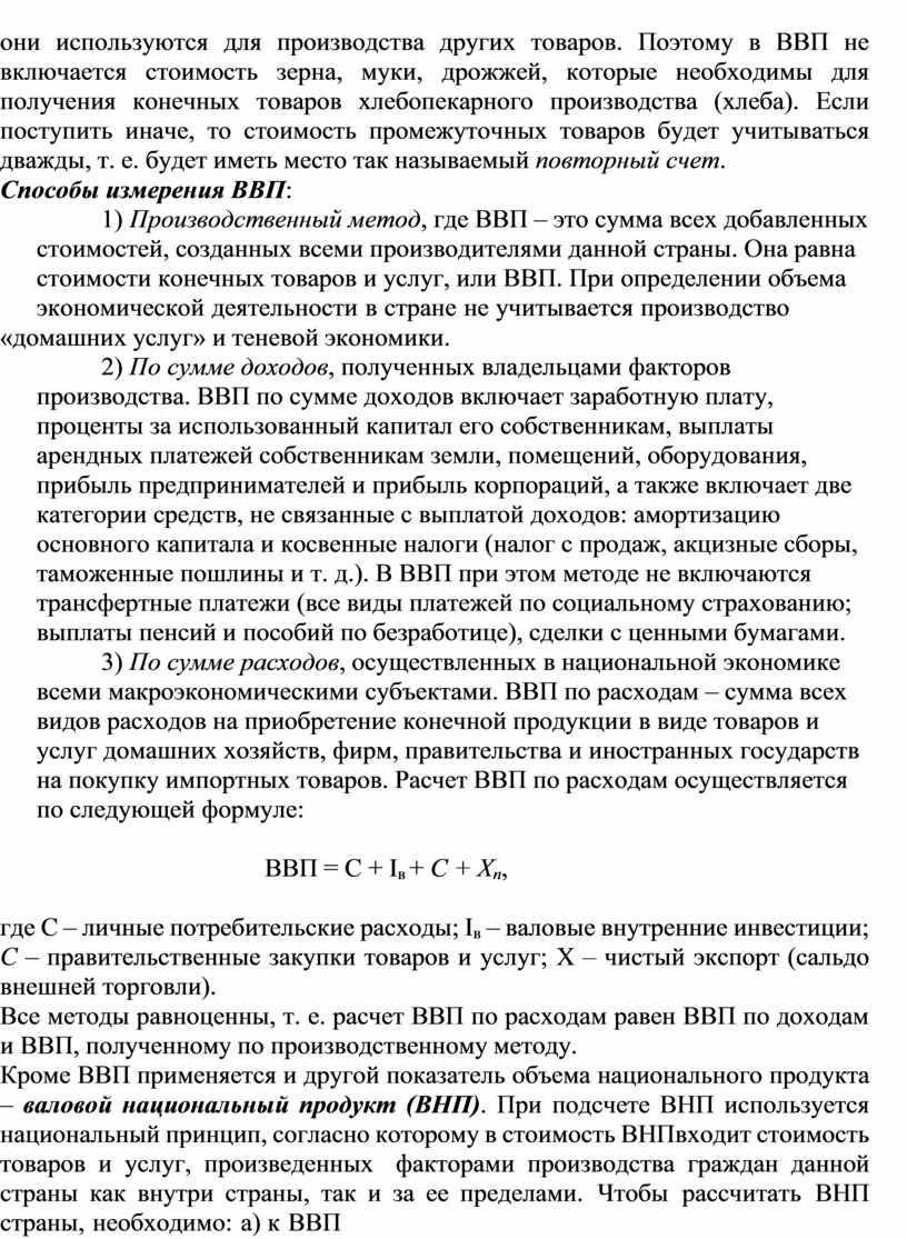 1) Производственный метод, где ВВП – это сумма всех добавленных стоимостей, созданных всеми производителями данной страны. Она равна стоимости конечных товаров и услуг, или ВВП. При определении объема экономической деятельности в стране не учитывается производство