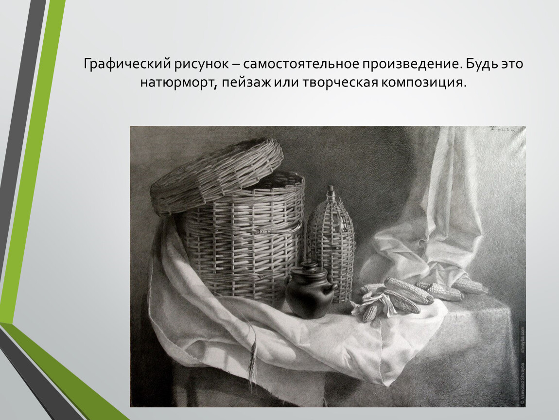 Графический рисунок – самостоятельное произведение. Будь это натюрморт, пейзаж или творческая композиция.