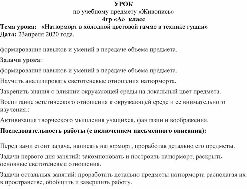 Тема урока: «Натюрморт в холодной цветовой гамме в технике гуаши»