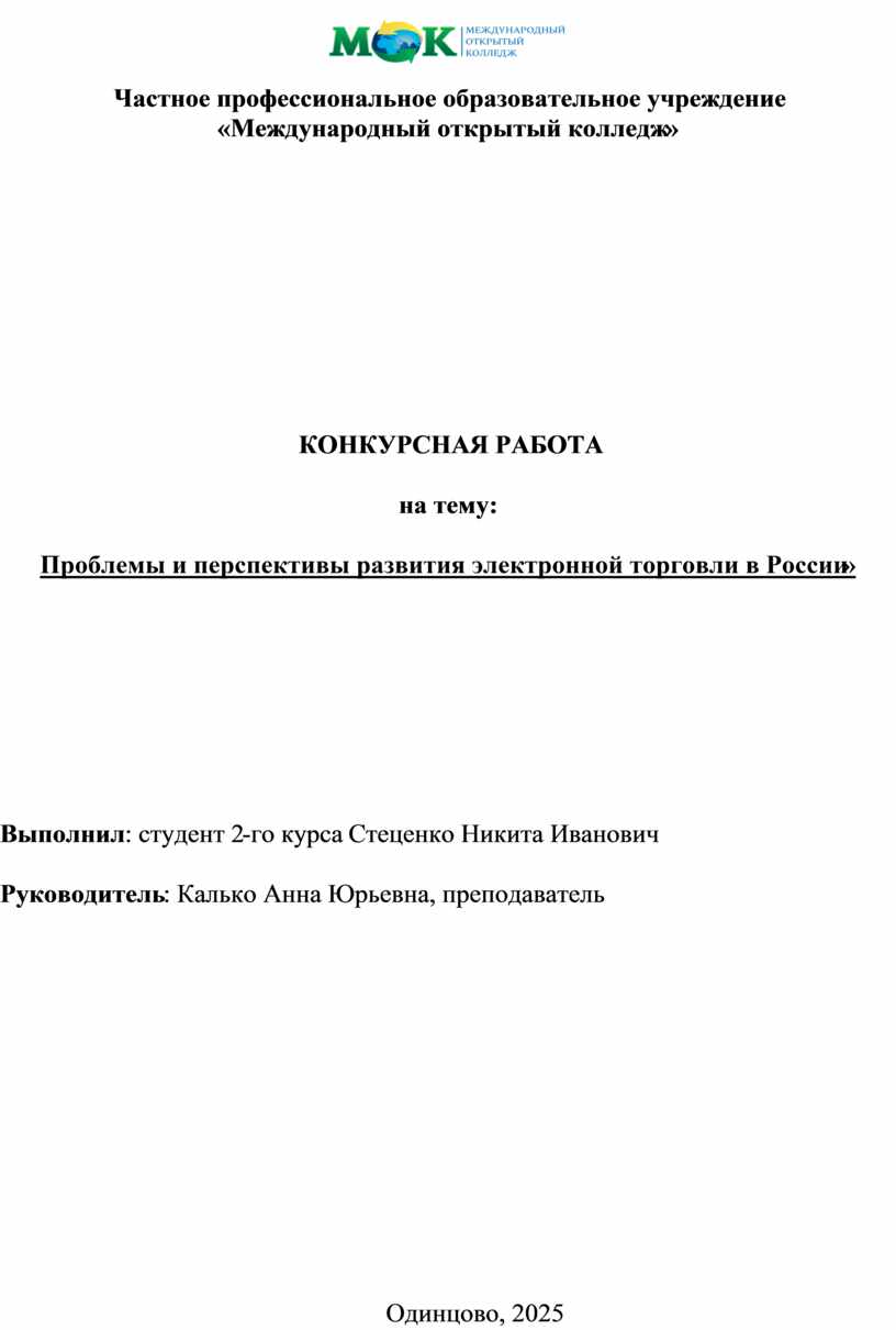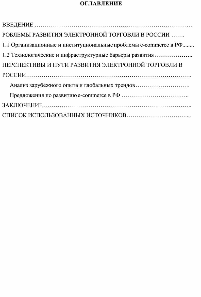 Цель работы — системно проанализировать основные проблемы электронной торговли в России, провести сравнительный анализ с зарубежной практикой и разработать перспективные предложения по развитию российской e-commerce.