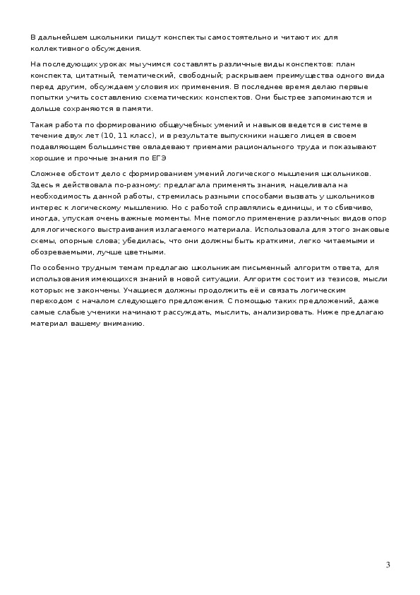 2В дальнейшем школьники пишут конспекты самостоятельно и читают их для