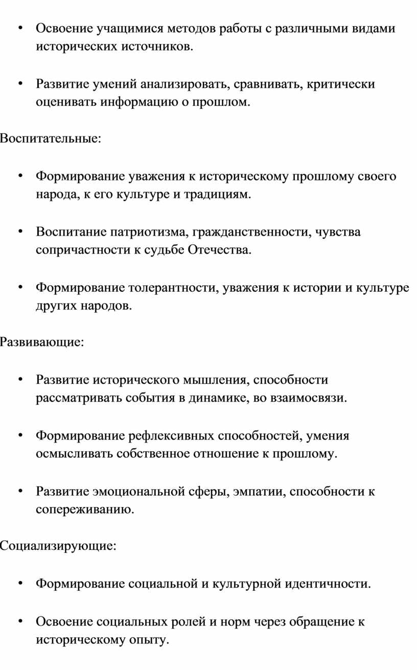 Развитие исторического мышления, рефлексивных способностей, эмпатии.