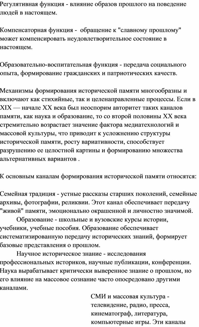 1.2. Структура, функции и механизмы формирования исторической памяти.